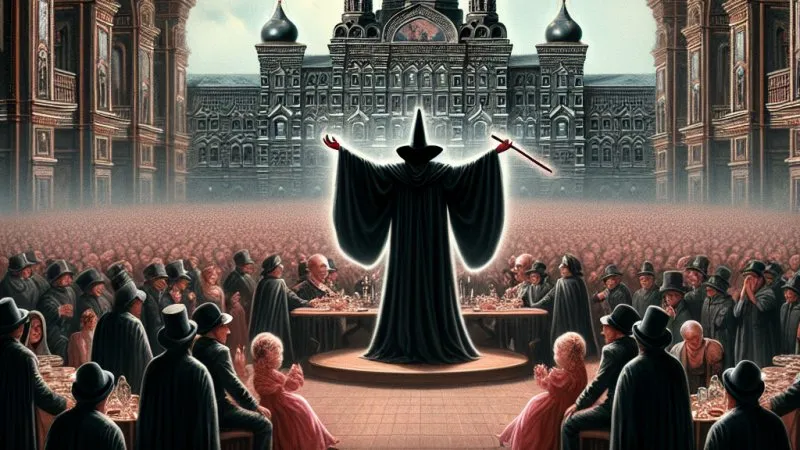 W powieści „Mistrz i Małgorzata” Bułhakow prezentuje spektakularny pokaz czarnej magii Wolanda, demaskujący zepsucie i hipokryzję moskiewskiej elity oraz stanowi punkt zwrotny fabuły. To metafora natury ludzkiej i krytyka społeczna.