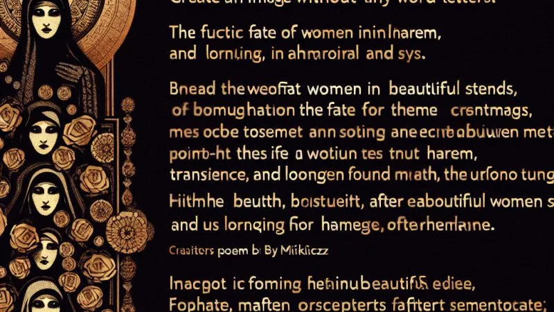 "Mogiły haremu" to dziewiąty sonet z cyklu "Sonety krymskie". Utwór nawiązuje tematycznie do wcześniejszych sonetów, takich jak "Bakczysaraj", "Bakczysaraj w nocy" oraz "Grób Potockiej", tworząc spójną wizję orientalnego, pełnego kontrastów świata. Mickiewicz przedstawia tu wizję śmierci i zapomnienia w kontekście haremu, miejsca będącego symbolem zamknięcia, luksusu, ale i izolacji. Sonet ten, podobnie jak inne w cyklu, łączy w sobie elementy liryczne z filozoficznymi, budując atmosferę pełną melancholii i tęsknoty za ojczyzną.3. Cel wypracowania