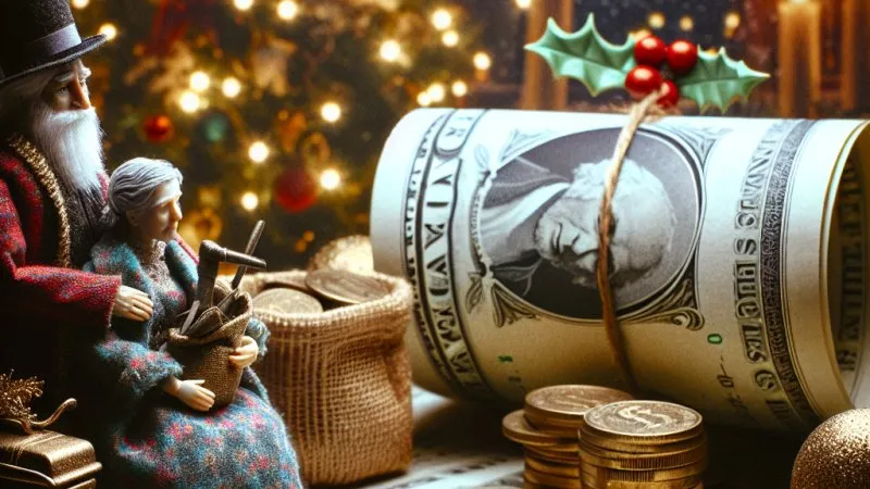 Ebenezer Scrooge, bohater „Opowieści wigilijnej” Charlesa Dickensa, jest kolejnym przykładem osoby, dla której pieniądze stały się celem samym w sobie. Scrooge, chociaż bogaty, żyje w nędzy, odcinając się od rodziny i społeczeństwa. Nie godziwie wynagradza swojego pracownika oraz nie dzieli się bogactwem z potrzebującymi. Jego zimne serce i skąpstwo prowadzą do samotności. Przełom następuje dzięki interwencji nadprzyrodzonej – wizytom duchów przeszłości, teraźniejszości i przyszłości. Przypominają mu one o konsekwencjach jego zachowania. Scrooge zmienia swoją postawę, zaczyna doceniać rodzinę i poprawia relacje z osobami wokół. Ostatecznie odkrywa, że prawdziwe szczęście przynoszą różne aspekty życia, a nie tylko pieniądze.