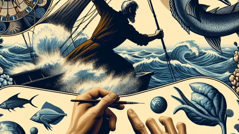 Podsumowując, Ernest Hemingway poprzez bogatą sieć symboli w „Starym człowieku i morze” odkrywa przed czytelnikiem głębokie prawdy o ludzkim życiu, determinacji i walce o własne cele. Symbolika dodaje dodatkową warstwę interpretacyjną do narracji, wzbogacając i pogłębiając przekaz utworu. Żagiel, maszt łodzi, postać chłopca, marlin, ręce Santiago, rekiny, taras, sny Santiago oraz Wielki DiMaggio – każdy z tych symboli przenosi specyficzne znaczenie, które razem tworzą kompleksową analizę ludzkiego doświadczenia. Dzięki temu „Stary człowiek i morze” staje się przykładem literackiego kunsztu i wiecznym przypomnieniem o wartościach, które są niezmienne w naszej egzystencji. Symbolika w tym utworze jest kluczem do zrozumienia głównych przesłań dzieła i głębi ludzkiej egzystencji, którą Hemingway mistrzowsko przedstawia.