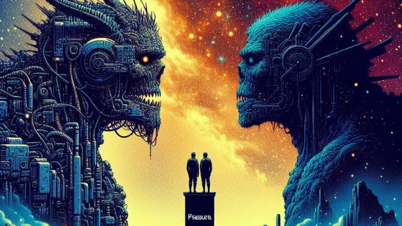 Podsumowując, "Dwa potwory" Stanisława Lema, stanowi wyjątkowe odstępstwo od tradycyjnych bajek z happy endem. Opowieść ta przeplata refleksje na temat ludzkiej natury z gorzką analizą totalitaryzmu, aż do dramatycznego, dystopijnego zakończenia. Przez pryzmat technologii i AI, Lem przekazuje głębokie przemyślenia na temat destrukcyjnej strony natury ludzkiej i jej nieodłącznej skłonności do samounicestwienia.Wnioski: