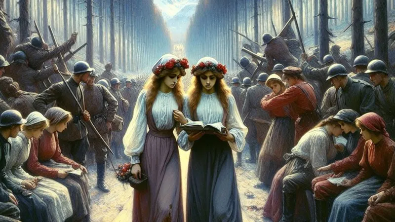 W miarę jak konflikt nabiera intensywności, obie siostry doświadczają kolejnych strat i triumfów. Daria znajduje własny sposób na rekonstruowanie swojego życia, mimo że otaczający ją świat ulega totalnej destrukcji. Katia natomiast, pochłonięta ideą rewolucji, zmienia się w silną kobietę, która nie zawaha się przed niczym, by walczyć o swoje przekonania. Trudności, z którymi się mierzą, są swoistą analogią do drogi przez mękę, jaką przeszła cała Rosja – kraju rozdartym płomieniami wojny i ideologicznymi podziałami.
