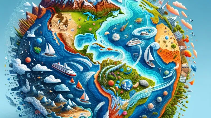 Innym ważnym czynnikiem wpływającym na klimat jest wpływ mórz i oceanów. Główne prądy oceaniczne, takie jak Gulf Stream czy Prąd Peru, przenoszą ciepło i wilgoć z obszarów o wyższej temperaturze ku obszarom o niższej temperaturze. Dlatego miejsca nadbrzeżne, które są dotknięte tymi prądami, mają zazwyczaj łagodniejszy klimat, niż obszary znajdujące się w głębi lądu. Przykładowo, Wielka Brytania, dzięki prądowi Gulf Stream, cieszy się łagodnym klimatem w porównaniu do innych regionów o tej samej szerokości geograficznej.