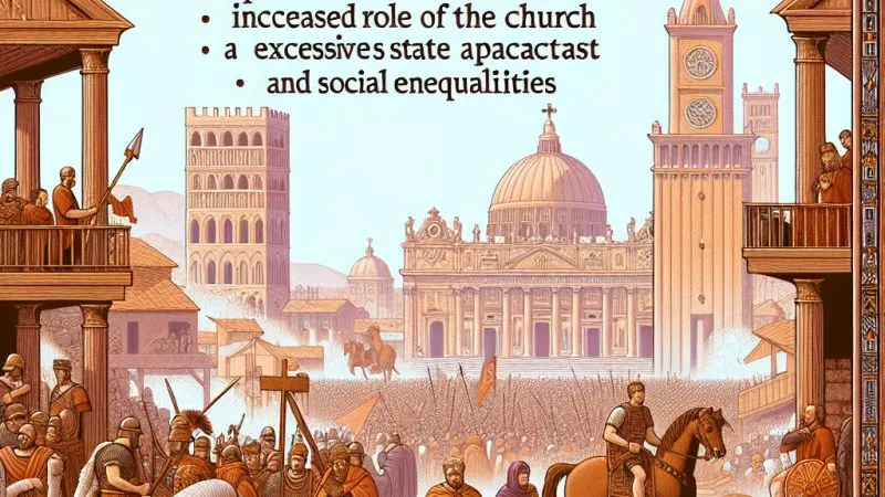 Wzrost roli Kościoła katolickiego miał również wpływ na upadek Cesarstwa. Duchowni katoliccy stawali się coraz potężniejsi i zyskiwali wpływy na terenach cesarstwa. Często nie byli podporządkowani władzy cesarskiej, co prowadziło do konfliktów i chaosu politycznego. Dodatkowo, Kościół przyczynił się do osłabienia kultury i edukacji, co miało negatywny wpływ na intelektualną stronę cesarstwa.