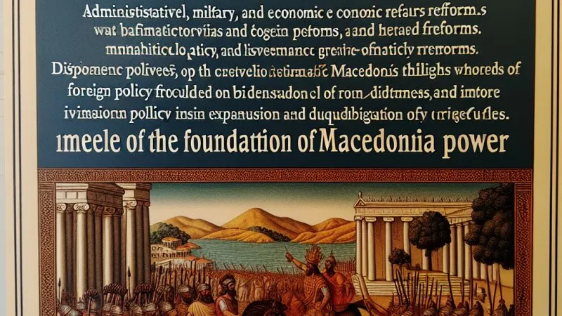 Filip II odegrał kluczową rolę w tworzeniu potęgi Macedonii. Jego reformy administracyjne, militarne i gospodarcze, działania dyplomatyczne oraz sukcesy militarne przyczyniły się do umocnienia państwa macedońskiego. Jego polityka zagraniczna polegała na ekspansji i podporządkowaniu sobie Greków. Filip II stworzył fundamenty potęgi macedońskiej. ✅