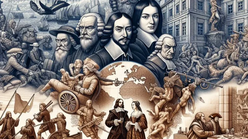 Wiek XVII to czas pełen konfliktów, absolutyzmu, rozwoju kultury i przemian politycznych. Wojna trzydziestoletnia i pokój westfalski mieli duże znaczenie. Wzrost absolutyzmu widoczny był m.in. we władzy Ludwika XIV. Rozwój kultury to np. "Hamlet" i prace Descartesa. Zmiany polityczne wpływały na kształtowanie się nowego ładu politycznego oraz idei równości i praw człowieka. ?