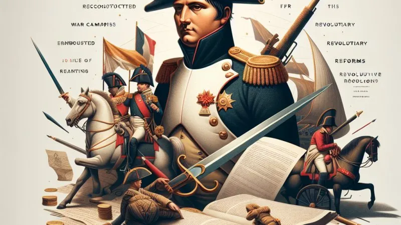 Napoleon Bonaparte, z wykształcenia wojskowego, zrewolucjonizował Francję i Europę, łącząc reformy z ambitnymi kampaniami wojennymi. Jego dziedzictwo pozostaje kontrowersyjne. ⚔️?