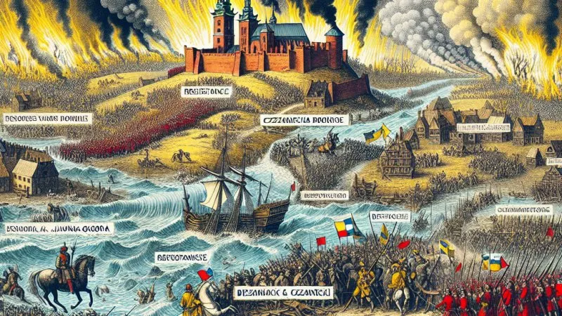 Potop szwedzki, znany również jako II Wojna Północna, to okres w historii Polski, który przyniósł znaczące zniszczenia i destabilizację kraju. Była to wojna trwająca od 1655 do 1660 roku, która nie tylko zrujnowała gospodarkę Rzeczypospolitej, ale także miała długotrwały wpływ na jej rozwój polityczny i społeczny.