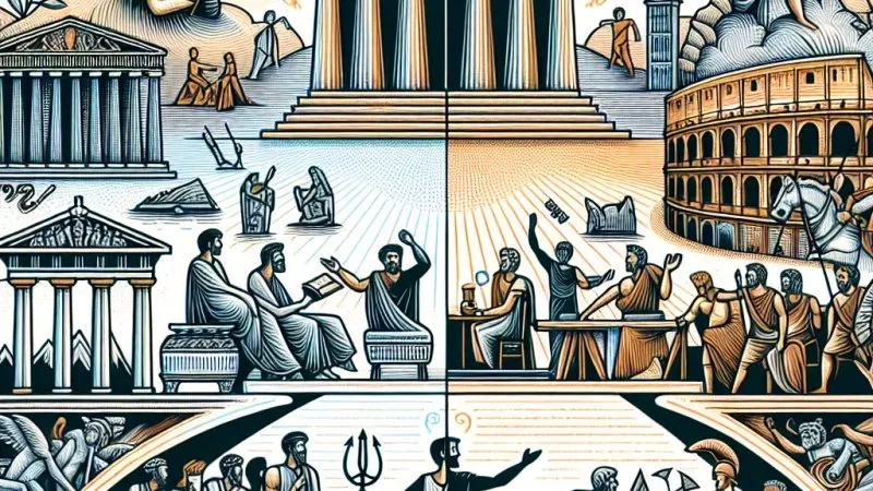 W Rzymie podobnie kultura przesiąkała życie publiczne, jednak funkcjonowała w znacznie bardziej scentralizowanym i zorganizowanym państwie. Instytucje takie jak senat czy rozbudowany system prawny wpływały na życie codzienne obywateli, a tradycje i obyczaje stanowiły element integrujący społeczeństwo Wielkiego Rzymu.