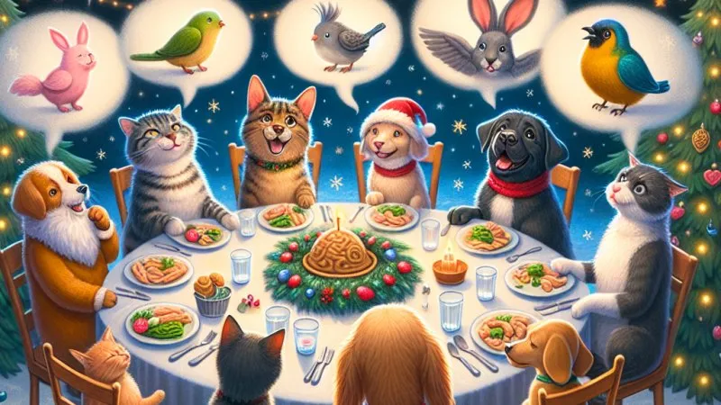 Oprócz kotów i psów, również inne zwierzęta w wigilijny wieczór mogą zaprezentować swoje zdolności komunikacyjne. Może zobaczymy, jak ptaki nawołują do siebie, wymieniając słowami informacje o bezpiecznym lotnictwie? A może spotkamy się z królikiem, który opowie nam, jakie to wspaniałe jest świętowanie z rodziną w ciepłej atmosferze?