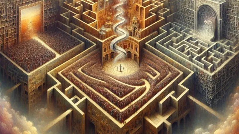 Mimo że z pozoru koncepcje teatru i labiryntu mogą wydawać się różne, to łączy je wspólny element – człowiek w trakcie życiowego spektaklu czy podróży musi stawiać czoła różnym wyborom i przeszkodom. W tragedii Sofoklesa "Król Edyp" widzimy, jak główny bohater, mimo starań, nie może uciec przed swoim przeznaczeniem, co jednoznacznie łączy obie metafory – życie jako scenariusz, który musimy odegrać, i labirynt pełen przeszkód, z którego nie ma ucieczki.