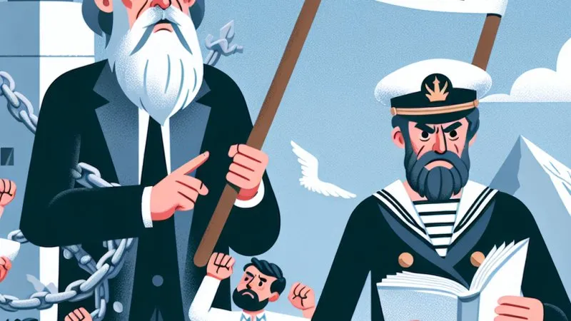 Na przeciwległym biegunie znajduje się postać Kapitana Ahaba z "Moby Dicka" Hermana Melville’a. Ahab, choć jest autorytetem na swoim statku, prowadzi swoją załogę do zguby przez swoją obsesję na punkcie białego wieloryba. Jego przykład ilustruje, jak destrukcyjny może być autorytet, który działa bez zderzenia z etycznymi czy moralnymi granicami. Mimo silnego charakteru i niezachwianej determinacji, Ahab staje się ostrzeżeniem przed ślepym podążaniem za liderem, który stracił umiar.