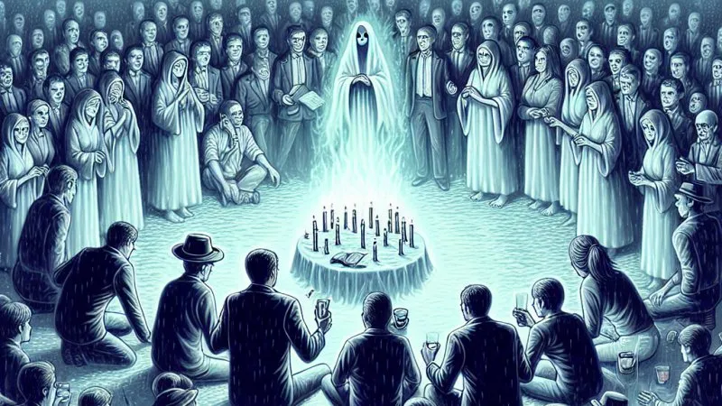 Wszyscy zebrani w kaplicy, wśród migoczącego płomienia świec i zapachu palącego się kadzidła, wyczekiwali na pojawienie się pierwszych duchów. Guślarz rozpoczął swoje inkantacje, pieśni wypełniły przestrzeń, a duchy, jeden po drugim, zaczęły materializować się wśród zebranych. Były to istoty z marzeń sennych i wspomnień, przywleczone z krainy zapomnienia na krótką chwilę w mrok tej specyficznej nocy.