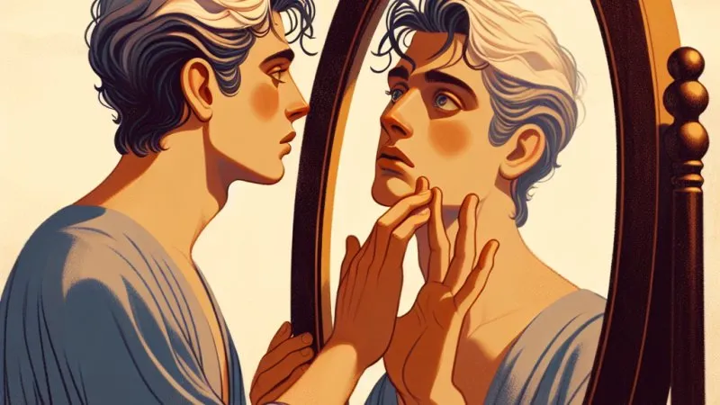 Narcyz, piękny lecz arogancki młodzieniec, nie potrafił kochać nikogo oprócz siebie. Patrząc w odbicie, utracił kontakt z rzeczywistością. Wnioskiem jest konieczność posiadania empatii i szacunku dla innych, aby odnaleźć prawdziwą miłość i spełnienie. #emojiprzemyślenia ?✅