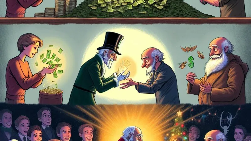 Opowieść wigilijna wskazuje, że pieniądz nie jest najważniejszą wartością. Scrooge, kochający tylko pieniądze, przemienia się, widząc, że prawdziwe szczęście nie wynika z bogactwa. Relacje między ludźmi są ważniejsze od materialnych dóbr. Bogactwo tkwi w bliskości z rodziną i przyjaciółmi, oraz w szacunku, życzliwości i gotowości do dzielenia się z innymi. ?✅