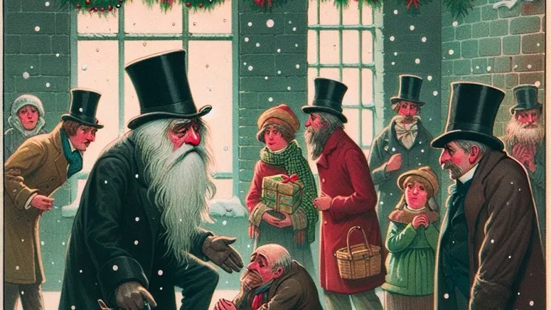 „Opowieść wigilijna” to klasyczne dzieło Dickensa, które opowiada historię Ebenezera Scrooge’a. Ta postać jest przykładem człowieka, który w całym swoim życiu gromadził bogactwo, zaniedbując wszelkie ludzkie wartości i uczucia. Był skąpcem, lekceważył innych i nie okazywał żadnej empatii. Jednakże w noc wigilijną, dzięki odwiedzinom duchów Przeszłości, Teraźniejszości i Przyszłości, Scrooge zdaje sobie sprawę z pustki swojego istnienia oraz konsekwencji, jakie niesie za sobą jego postępowanie. To doświadczenie przemienia go całkowicie. Kiedy otrzymuje od losu drugą szansę, decyduje się ją wykorzystać, stając się życzliwym i hojnym człowiekiem. "Opowieść wigilijna" daje jasny sygnał, że każdy, niezależnie od swojej przeszłości, zasługuje na drugą szansę, jeśli tylko istnieje w nim gotowość do zmiany.