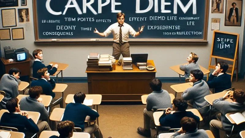 Hasło „carpe diem”, pochodzące z łacińskiego, oznacza „chwytaj dzień”. Swoje korzenie znajduje w twórczości rzymskiego poety Horacego, który w swoich pracach zwracał się do epikureizmu, kierunku filozoficznego akcentującego potrzebę czerpania radości z chwili obecnej i korzystania z każdego dnia maksymalnie, gdyż przyszłość jest niepewna. Film "Stowarzyszenie umarłych poetów", w reżyserii Petera Weira z 1989 roku, podejmuje tę ideę i wprowadza ją do świata konserwatywnej Akademii Weltona, gdzie nowy nauczyciel, John Keating, zakłóca ustalony porządek i nakłania uczniów do świadomego przeżywania swojego życia.