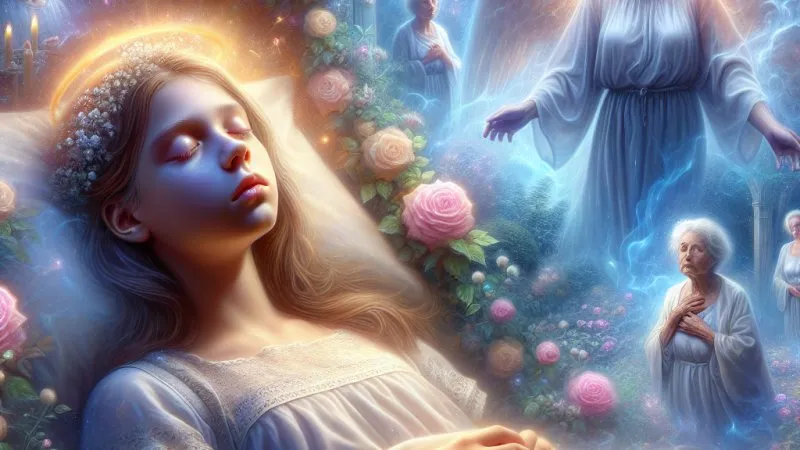 Bóg przytula ją delikatnie, a Urszulka zaczyna rozumieć swoją nową rzeczywistość – jej ziemska podróż dobiegła końca, a teraz ma przed sobą wieczność w niebie. Czuje, jakby z jednej strony jej serce krwawiło z tęsknoty, a jednocześnie pulsowało z radości bycia blisko Boga.