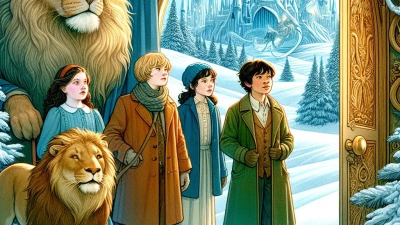 Opowieść przedstawia przygody czwórki rodzeństwa, które trafia do magicznej krainy Narnii i pomaga jej mieszkańcom walczyć ze złą Białą Czarownicą.