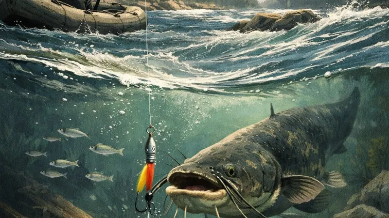 Poznaj skuteczną technikę łowienia sumów w szybkiej rzece metodą vertical i zdobądź wiedzę o sprzęcie oraz zachowaniach ryb 🎣