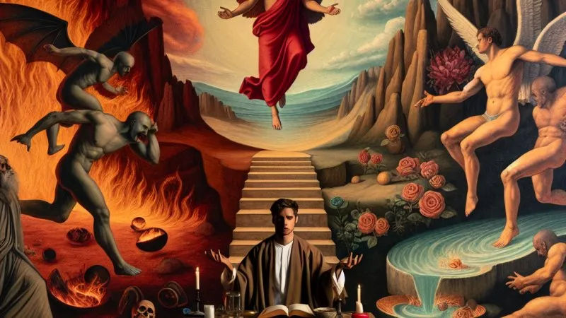 "Boska Komedia" napisana przez włoskiego poety Dantego Alighieri, jest jednym z najważniejszych dzieł literackich średniowiecza. Opisuje ona podróż głównego bohatera, Dantego, przez trzy królestwa zaświatów: Piekło, Czyściec i Raj. Ta niezwykła wędrówka nie tylko przedstawia czytelnikom obrazy piekła i błogosławieństwa nieba, lecz także odbiera ich w odległą epokę, gdzie toczyły się dyskusje teologiczne i filozoficzne. Podróż Dantego w Boskiej Komedii ma zarówno wymiar rzeczywisty, jak i wewnętrzny.
