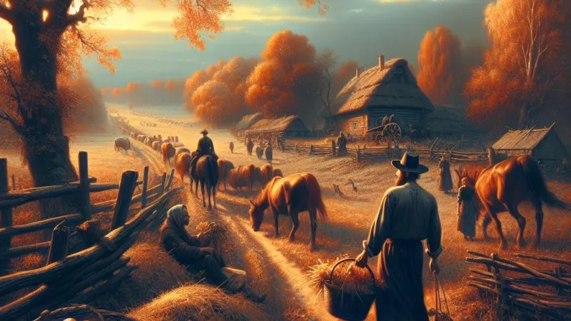 Autor już na samym początku kreuje obraz polskiej wsi w XIX wieku, pełnej chłopskich gospodarstw i pracujących rąk. Zaczynając od opisów pola, Reymont nie tylko oddaje piękno natury, ale także wprowadza nas w intensywny rytm dnia chłopa. Widzimy, jak od świtu do zmierzchu ciężko pracuje, aby zapewnić utrzymanie swojej rodziny. A jakże trudna jest ta praca! Wielogodzinne zginanie się nad polami, uprawa ziemi, zbieranie plonów. Do tego dochodzi jeszcze ciężka praca w chłopskich chałupach i stawianie czoła różnym trudnościom związanym z przyrodą i nieodpowiadającej na ludzkie pragnienia.