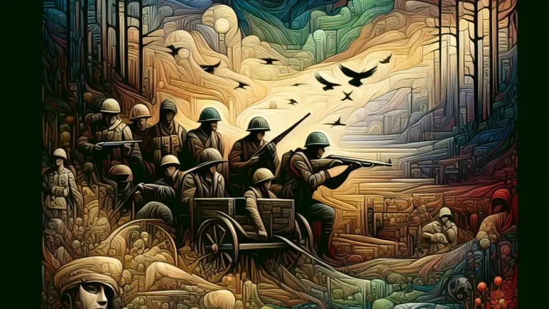 Jednym z dominujących motywów w poezji Różewicza jest tematyka wojenna, która ujawnia się zarówno w bezpośredniej relacji przeżyć podmiotu lirycznego, jak i w szerszej refleksji nad konsekwencjami konfliktu. Utwór "Ocalony" niesie w sobie głębokie przeżycia wewnętrzne, duchową śmierć i nieustanne poszukiwanie sensu po utracie wszystkiego, co było znane i pewne przed wojną. Dzieło to bezpośrednio odnosi się do poczucia pustki i osamotnienia, jakie towarzyszy bohaterom wracającym z frontu. Analogicznie, "Zostawcie nas" zawiera apel pokolenia Kolumbów, którego młodość została zdominowana przez wojnę, podkreślając jednocześnie niezrozumienie i konflikt międzypokoleniowy. "Matka powieszonych" natomiast, symbolizuje ogólnonarodową stratę i rozpacz, wskazując na uniwersalne znaczenie doświadczeń wojennych w kontekście ludzkich tragedii.