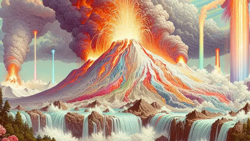 Erupcja wulkanu Pektu-san w Korei Północnej w 2006 r. przyniosła niszczenie, ale także piękno natury. Potężne fale magmy, fontanny ognia i tęczowe chmurki malowane na niebie robiły wrażenie. To przypomnienie o siłach i urodzie naszej planety, inspirujące dla artystów i badaczy. ?✨