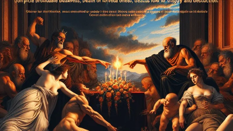 "Antygona" to utwór starożytny, który koncentruje się na konflikcie pomiędzy prawem boskim a prawem ludzkim. Kreon, nowy król Teb, po objęciu tronu staje przed wyzwaniem związanym z pochówkiem Polinika, jednego z braci Antygony. Polinik uznany został za zdrajcę ojczyzny, dlatego Kreon zakazuje jego pochówku, co było sprzeczne z religijnymi przekonaniami i tradycjami. Decyzja Kreona, podjęta z pobudek politycznych, ignoruje więzi rodzinne i prawa moralne. Kreon, zaślepiony własną wizją absolutnej władzy, odrzuca wszystkie rady, które podważają jego decyzję. W jego postępowaniu widać, jak silna jest jego potrzeba umocnienia swojej pozycji jako władcy, co powoduje, że staje się nieczuły na argumenty innych. To właśnie ta żądza władzy prowadzi do tragedii - śmierci Antygony, która postanawia sprzeciwić się nieludzkiej decyzji króla. W efekcie dochodzi do kolejnych tragedii: samobójstwa Hajmona, syna Kreona i narzeczonego Antygony, a także śmierci Eurydyki, żony Kreona. Utrata syna i żony doprowadza władcę do całkowitego upadku i zrozumienia błędów, ale jest już za późno, by cokolwiek zmienić.