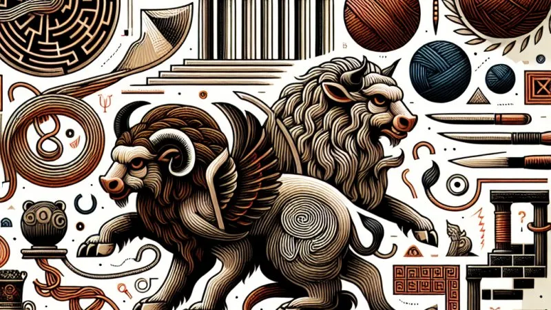 Treść: Mit o Ariadnie i Minotaurze rozgrywa się na Krecie, gdzie król Minos trzymał potwora o ludzkim ciele i bykowej głowie, Minotaura, w labiryncie. Często wybierano ofiary, które były skazywane na śmierć w przerażającym labiryncie. Pewnego dnia na Krecie przybył Tezeusz, młody atenyjski heros, który postanowił stawić czoło Minotaurowi. Ariadna, córka króla Minosa, zakochała się w Tezeuszu i pomogła mu w pokonaniu potwora. Dała mu magiczną klamrę, która umożliwiała mu znalezienie drogi powrotnej z labiryntu oraz podsunęła mu pomysł, aby użyć kępy włóczni, którą wcześniej ukryła, aby zapędzić Minotaura w pułapkę. Tezeusz zgładził potwora i zdołał uciec z wyspy razem z Ariadną.