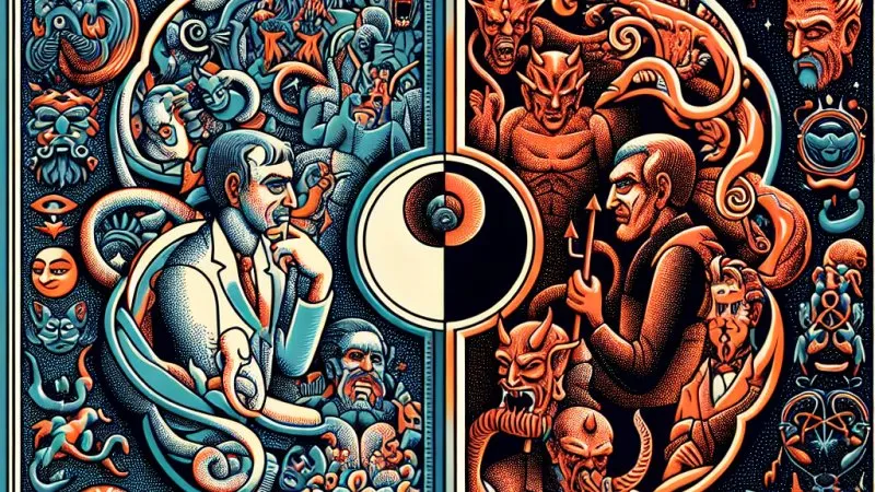 Innymi znamiennymi przykładami ludzkich sprzeczności są chociażby Raskolnikow z "Zbrodni i kary" Dostojewskiego czy doktor Jekyll z powieści "Doktor Jekyll i pan Hyde" Roberta Louisa Stevensona. Raskolnikow żyje w przekonaniu, że może stanąć ponad moralnością i prawem, dokonując morderstwa w imię "wyższych celów". Jednak jego wewnętrzne rozterki i wyrzuty sumienia ukazują, że człowiek nie może w pełni odrzucić wpływu moralności na swoje działania. Z kolei postać doktora Jekylla eksploruje ideę ukrytych aspektów ludzkiej psychiki, prezentując dwie różne i skrajne strony jednej osoby – dobrodusznego naukowca i okrutnego pana Hyde'a.