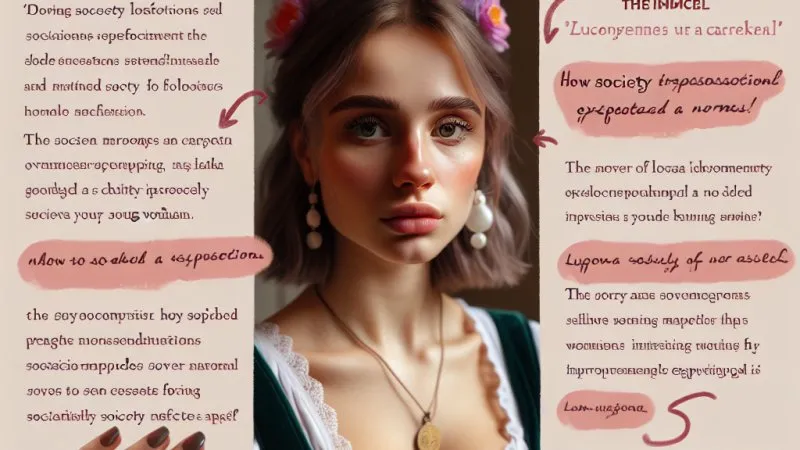 Równocześnie, powieść ukazuje także społeczne oczekiwania wobec młodej kobiety, które często są nieodpowiednie i ograniczające. Lucyna jako młoda dziewczyna jest narzucana przez rodzinę do pełnienia roli opiekunki z powodu jej niepowodzeń w zdobywaniu wykształcenia. W społeczeństwie dominuje przekonanie, że dla kobiety najważniejsze jest spełnienie się w roli matki i żony. Oczekuje się, że Lucyna powinna być dobrą gospodynią, zadbać o czystość i kordonki, a także być odpowiedzialną opiekunką dla dzieci. Przede wszystkim jednak, młoda dziewczyna jest postrzegana przez innych jako osoba nieudolna i niezdolna do samodzielnego funkcjonowania.