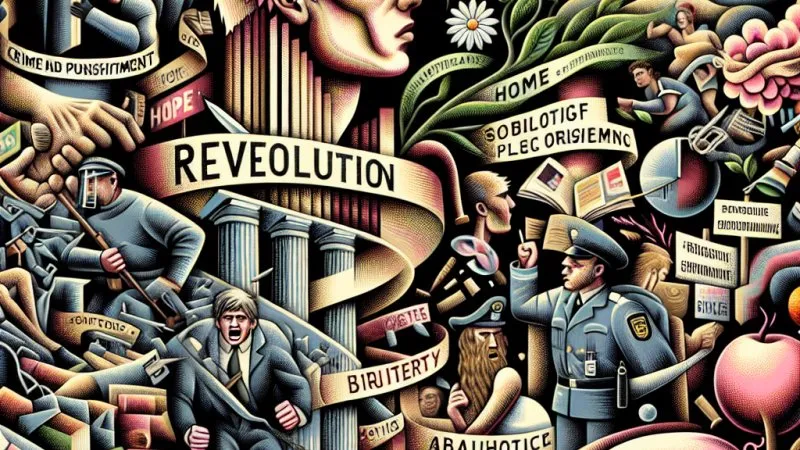 Jednym z najważniejszych dzieł literackich poruszających temat rewolucji jest "Zbrodnia i kara" Fiodora Dostojewskiego. Ta powieść, mimo że bezpośrednio nie dotyczy konkretnego wydarzenia rewolucyjnego, odzwierciedla napięcia społeczno-polityczne XIX-wiecznej Rosji. Postać Rodiona Raskolnikowa, który z trudnością odnajduje się w zmieniającym się świecie, obrazują aspiracje i rozterki młodego pokolenia intelektualistów. Raskolnikow postanawia dokonać zbrodni, wierząc, że jest w stanie zmienić świat na lepsze. Jego wewnętrzna walka między wartością życia a ideą "wyższości" pewnych jednostek ujawnia jak bardzo rewolucyjne idee mogą popychać ludzi do radykalnych czynów w imię zmiany świata.