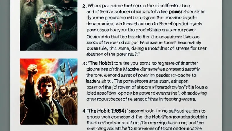 Podsumowując, różne sposoby sprawowania władzy wpływają na jednostki i całe społeczeństwo w różnych sposób. Społeczne konteksty, przedstawione zarówno w "Makbecie", w "Hobbicie" jak i w "Roku 1984" George’a Orwella, prezentują nam różne oblicza władców i sprawowania przez nich władzy. Wniosek z tych utworów jest taki, że władza jako odpowiedzialność i poczucie służby innym często przynosi długotrwałe, pozytywne efekty, w przeciwieństwie do władzy dążącej do totalnego panowania i kontroli, która z czasem prowadzi do destrukcji i upadku.