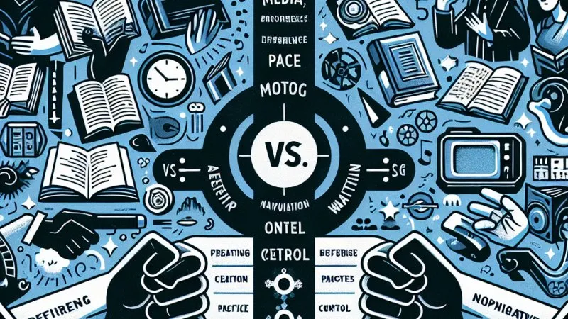 Następną różnicą między oglądaniem filmów a czytaniem książek jest tempo i kontrola. Podczas oglądania filmu, wszelkie wydarzenia, dialogi i akcje są spływające na nas w ustalonym tempie, które nadaje reżyser. Możemy być zachwyceni tempem filmu i emocjonować się dynamicznymi sekwencjami, ale nie mamy pełnej kontroli nad tym, jak postrzegamy fabułę. Z drugiej strony, czytając książkę, kontrolujemy tempo czytania i mamy możliwość zatrzymania się, cofnięcia lub powtórzenia fragmentu, aby go lepiej zrozumieć. Ta większa kontrola nad treścią może nas pogłębiać w historii i pozwala nam bardziej zagłębiać się w różne aspekty fabuły.