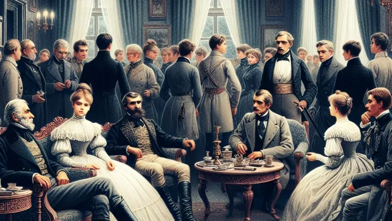 1. Opis arystokracjiW "Salonie warszawskim" możemy zaobserwować wyraźny kontrast między przedstawicielami arystokracji a młodzieżą. Arystokracja siedzi przy jednym ze stołów, oddzielona od reszty. Mówią po francusku, co wskazuje na ich snobizm i pozorną wyższość kulturową. Najbliżej serca mają francuskie obyczaje, ignorując polską tradycję i język. Ich zachowanie jest wynikiem zafascynowania zachodnią kulturą, co ma również swoje korzenie w okresie saskim, kiedy to język francuski był synonimem luksusu i wyrafinowania.