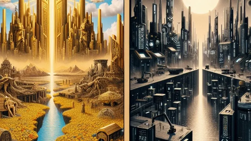 „Kandyd” Woltera, napisany w XVIII wieku, na tle Oświecenia, jest satyriczną powiastką filozoficzną, które krytykuje optymizm Leibniza, przedstawiając Eldorado jako idealną krainę, która choć doskonała, nie jest miejscem dla człowieka poszukującego prawdziwego sensu życia. Z kolei „Nowy wspaniały świat” Aldousa Huxleya, powstały w XX wieku, w erze postępu technologicznego i narastających totalitaryzmów, to powieść antyutopijna, której celem jest demaskacja zagrożeń związanych z kontrolą społeczną i manipulacją.