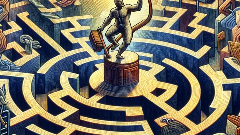 Człowiek w labiryncie życia nieustannie napotyka na różnorodne wyzwania, dylematy moralne, ambicje i uczucia, które kształtują jego drogę. Literatura pełna jest takich przykładów, pokazując skomplikowaną naturę ludzkiego losu oraz nieustanne poszukiwanie właściwej ścieżki. Błądząc w labiryncie życia, człowiek często napotyka na ściany, z których musi znaleźć wyjście, niekiedy pokonując samego siebie. W labiryncie życia każdy krok jest ważny, a każda decyzja może prowadzić do nowych wyzwań i przeszkód, które kształtują naszą tożsamość i los.