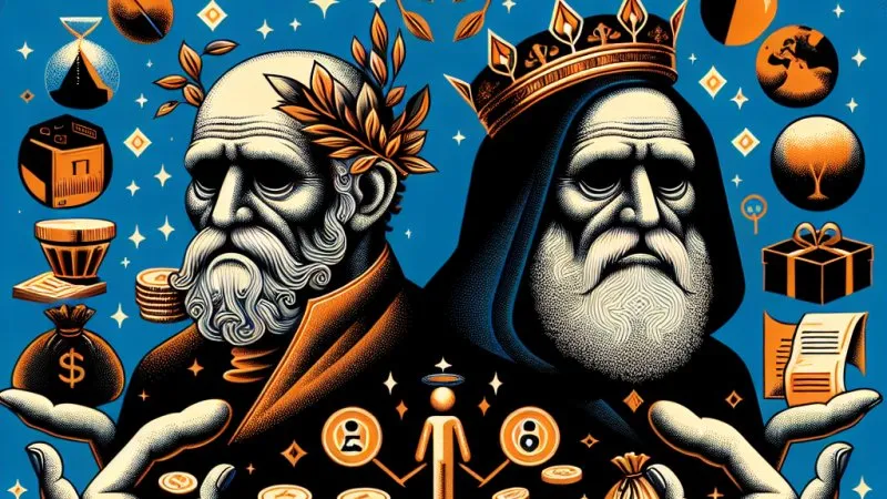Czy posiadanie dóbr materialnych zapewnia prawdziwe szczęście? Przykłady skąpca i Makbeta pokazują, że nie. Szczęście wynika z równowagi ducha, pozytywnych relacji i miłości. Dobra materialne mogą tylko uzupełnić te wartości. ✅
