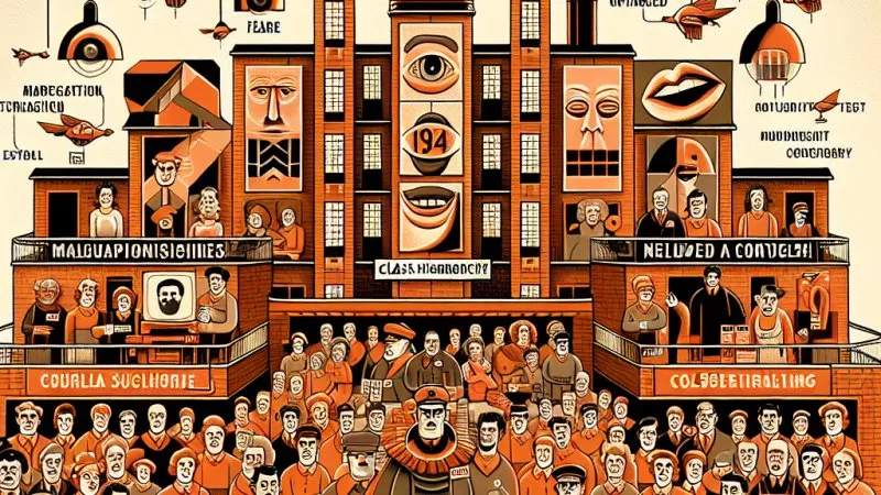 W „Roku 1984” Orwella, totalitarna Oceania kontroluje społeczeństwo przez hierarchię klas i ministerstwa, wykorzystując manipulację i strach. ?️♂️?