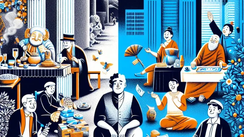Różnorodność literackich dzieł i postaci często ukazuje skomplikowaną relację między dobrami materialnymi a ludzkim szczęściem. W analizowanych utworach, takich jak "Skąpiec" Moliera, "Opowieść wigilijna" Charlesa Dickensa, przypowieść o synu marnotrawnym, mit o królu Midasie, oraz historie św. Franciszka i św. Aleksego, przedstawiono różne aspekty tego zagadnienia, często wskazując, że prawdziwe szczęście nie wynika z posiadania dóbr materialnych, lecz z innych wartościach i doświadczeń.