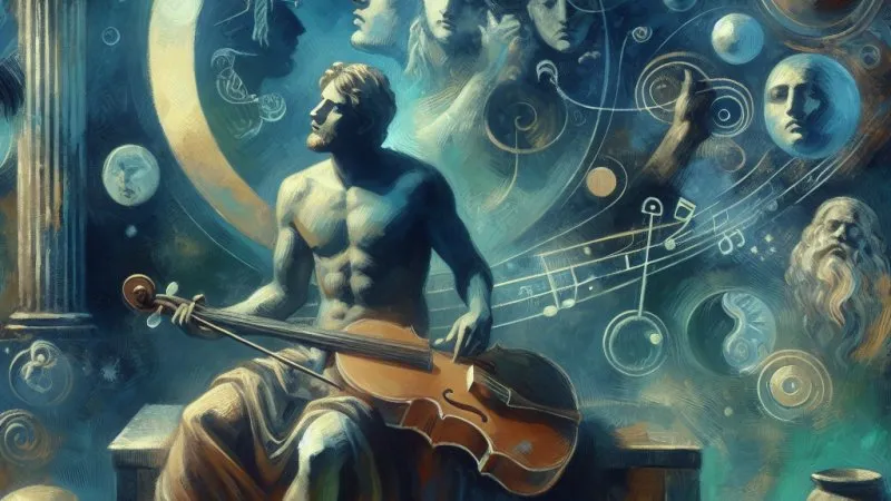 Na pierwszy rzut oka można dostrzec Orfeusza, który stoi z głową pochyloną, trzymając w rękach swój instrument muzyczny - lirę. Jego postać jest zarysowana z delikatnością i finezją, co pozwala podkreślić delikatność i wrażliwość samego bohatera. Widać, że jest on głęboko zanurzony w przemyśleniach i pełen smutku.