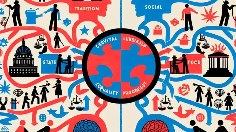 Konserwatyzm kładzie nacisk na tradycję i więzi społeczne, a liberalizm na indywidualizm i prawa jednostki. Konserwatyści uważają, że istotną rolę odgrywa państwo, a liberałowie skupiają się na równości i postępie społecznym. #✅