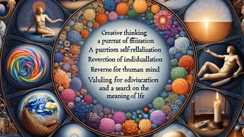 Pełnia człowieczeństwa w literaturze i sztuce renesansu przejawiała się poprzez twórcze myślenie, dążenie do samorealizacji, refleksję nad kondycją ludzką, hołdowanie indywidualności, wartościowanie edukacji i umysłu oraz poszukiwanie sensu życia. ?