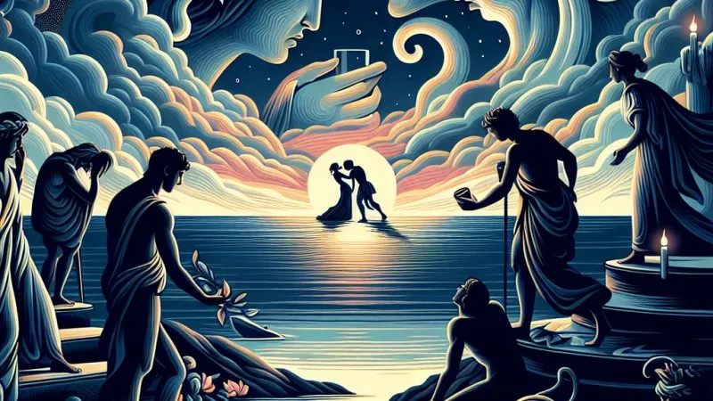 Obraz przedstawia moment, gdy Orfeusz z żalem traci Eurydykę, symbolizując miłość, nadzieję i tragiczne skutki niecierpliwości. To refleksja nad uniwersalnymi wartościami.
