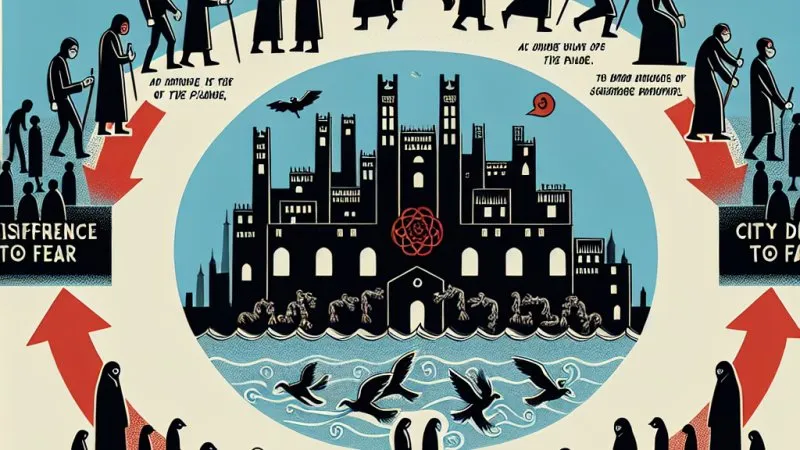 Oran z "Dżumy" Camusa przechodzi od obojętności przez strach do solidarności; epidemia kształtuje postawy społeczne i moralne bohaterów.