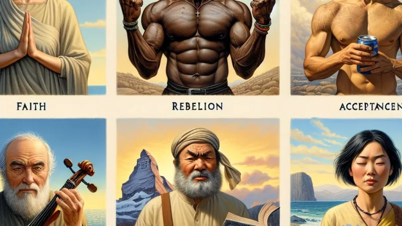 Ludzie różnie reagują na trudne doświadczenia: poprzez wiarę, bunt, akceptację, pasję lub poszukiwanie piękna, co ukazuje literatura i poezja.