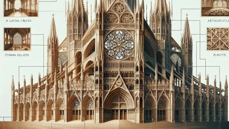 Symbolika katedry gotyckiej: rzut, konstrukcje, wnętrze, podpory, posadzka, sklepienia i dekoracja