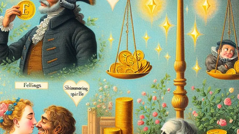 Skąpiec" Molière'a pokazuje, że dobra materialne nie przynoszą prawdziwego szczęścia. Harpagon, skąpy i egoistyczny, ceni pieniądze bardziej niż miłość. Eliza i Kleant doceniają wartość uczuć i pasji. Pieniądze mogą dawać przyjemność, ale nie spełnienie. ⚖️✨
