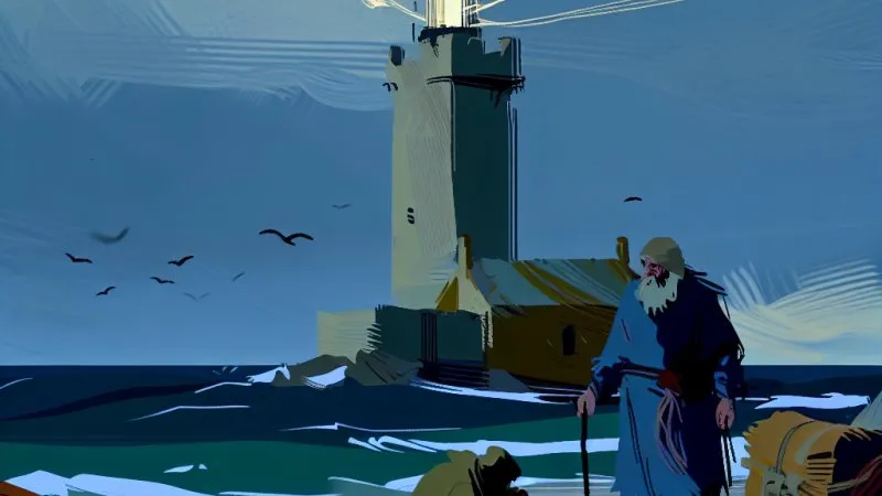 Opowiadanie rozpoczyna się od momentu, kiedy Skawiński otrzymuje pracę latarnika. Jest to dla niego swoisty azyl, miejsce, w którym może spędzić resztę życia, z dala od zgiełku i chaosu świata, który tyle razy go zawiódł. Praca latarnika wydaje się idealna dla człowieka zmęczonego życiem i poszukującego ukojenia. Jej monotonia i izolacja mają charakter terapeutyczny; latarnik codziennie wykonuje te same proste czynności, co daje mu poczucie stabilności i rutyny, której tak bardzo brakowało mu w przeszłości.